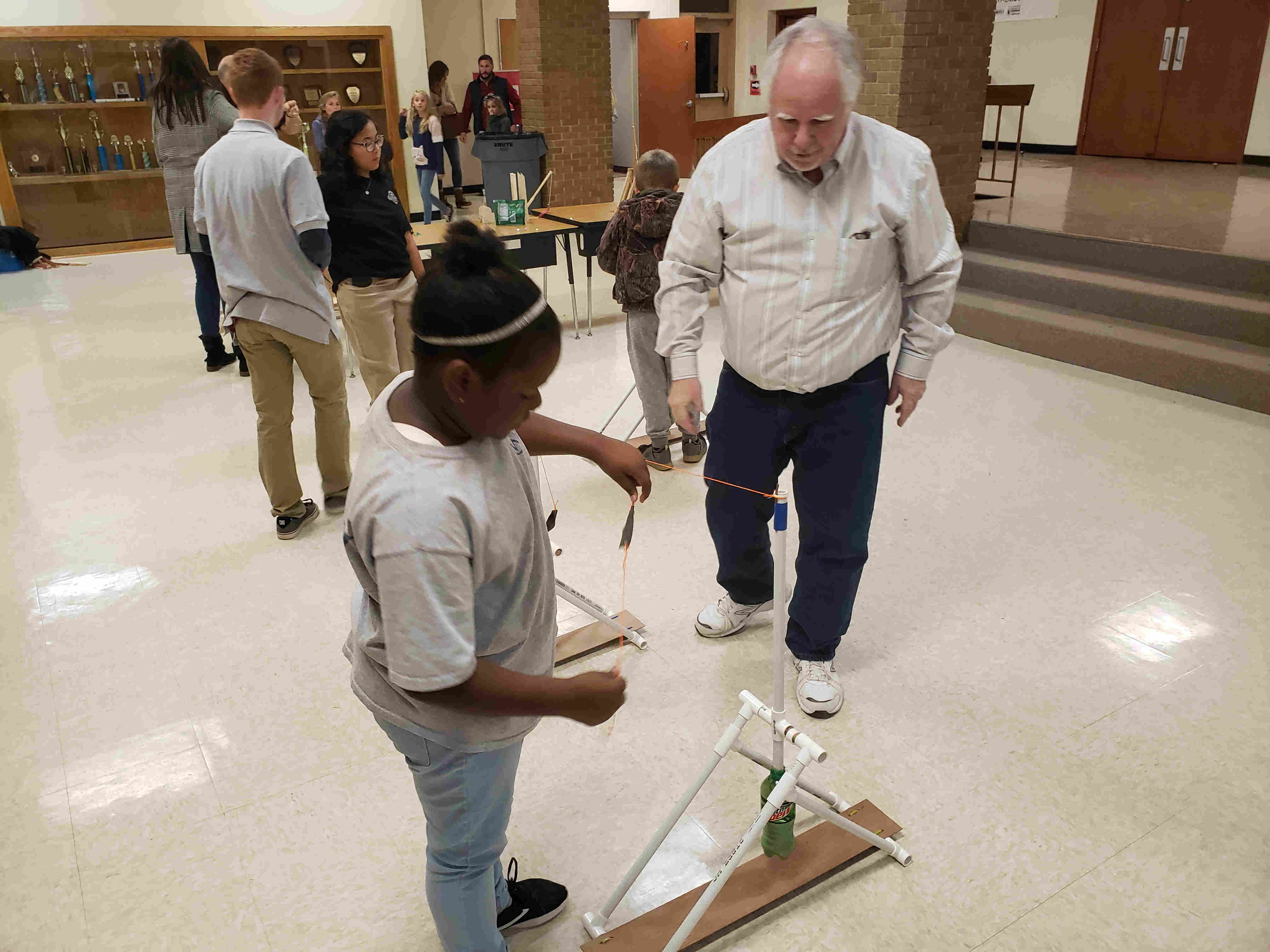 Some co-workers and I made trebuchets out of PVC for STEM night at a local middle school. There were about 800 people in attendance.